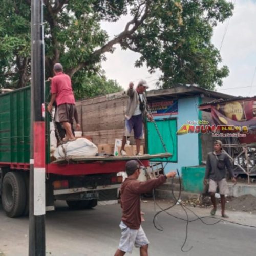 (Foto: Truk Fuso Muatan Barang di Jalan Hasan Assegaf Dawuhan Situbondo Putuskan Kabel Listrik, Segera Tindak Tegas. Red)