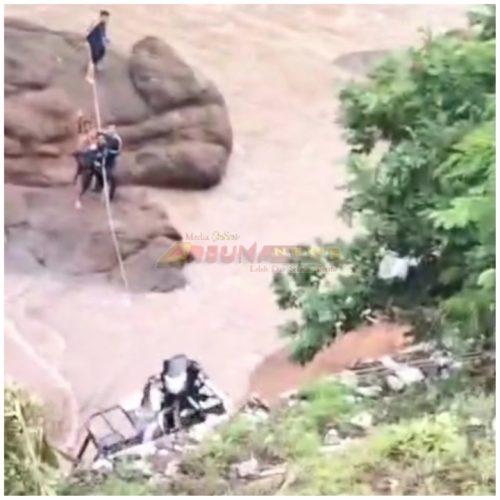 Menurutnya, “Proses evakuasi melibatkan Tim Gabungan diantaranya TAGANA, BPBD, Polsek Kota, Laka Lantas, Komunitas Pecinta Alam KAWANA dan juga dibantu oleh warga. Sekitar pukul 17.00 WIB motor roda tiga berhasil diangkat ke permukaan dengan peralatan seadanya”.